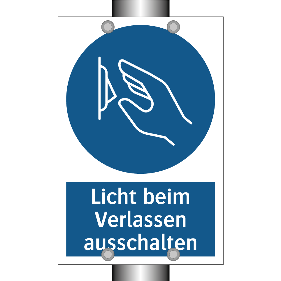 Gebotsschild mit dem Text Licht beim Verlassen ausschalten