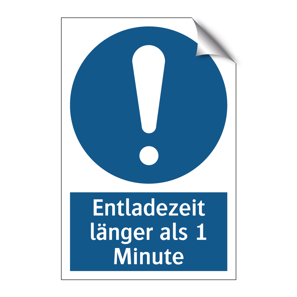 Gebotsschild mit dem Text Entladezeit länger als 1 Minute