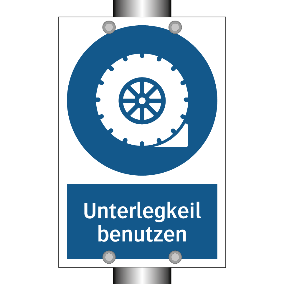 Gebotsschild mit dem Text Unterlegkeil benutzen