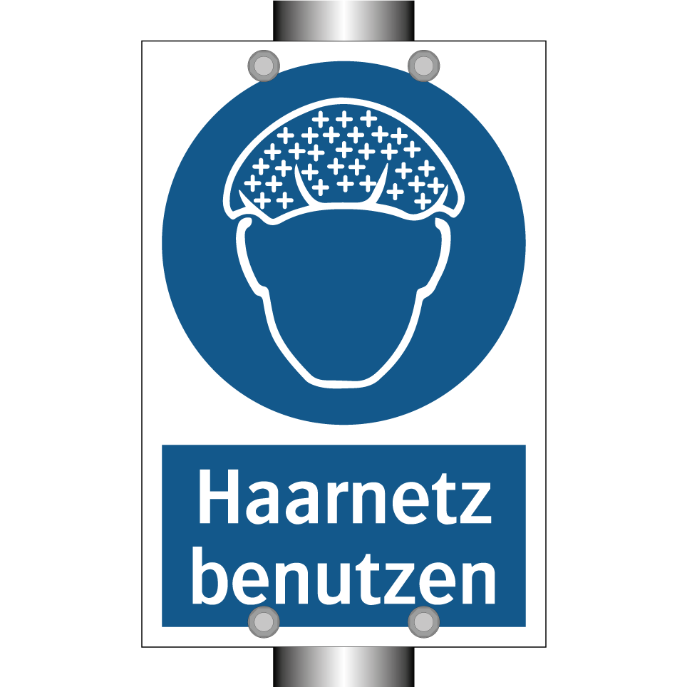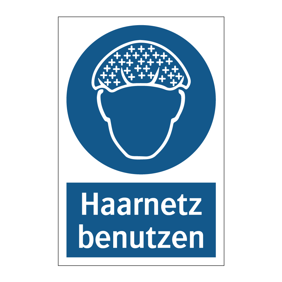 Gebotsschild mit dem Text Haarnetz benutzen