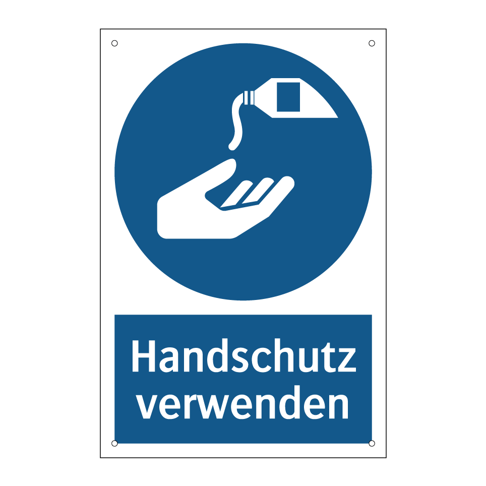 Gebotsschild mit dem Text Handschutz verwenden
