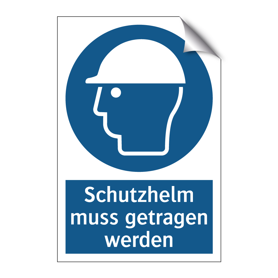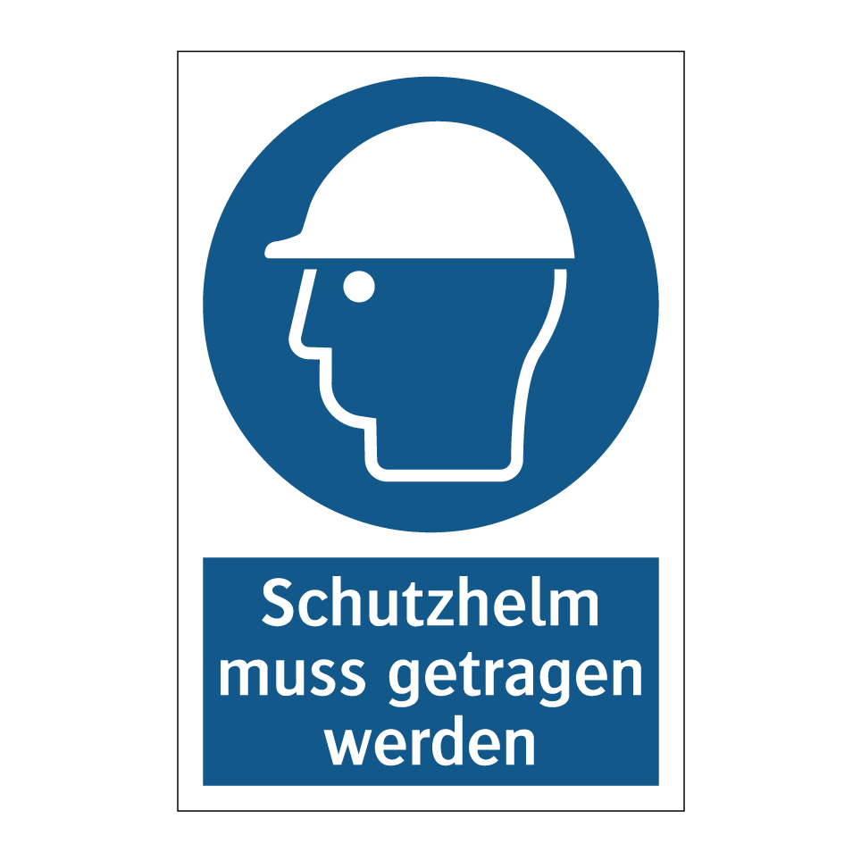 Gebotsschild mit dem Text Schutzhelm muss getragen werden