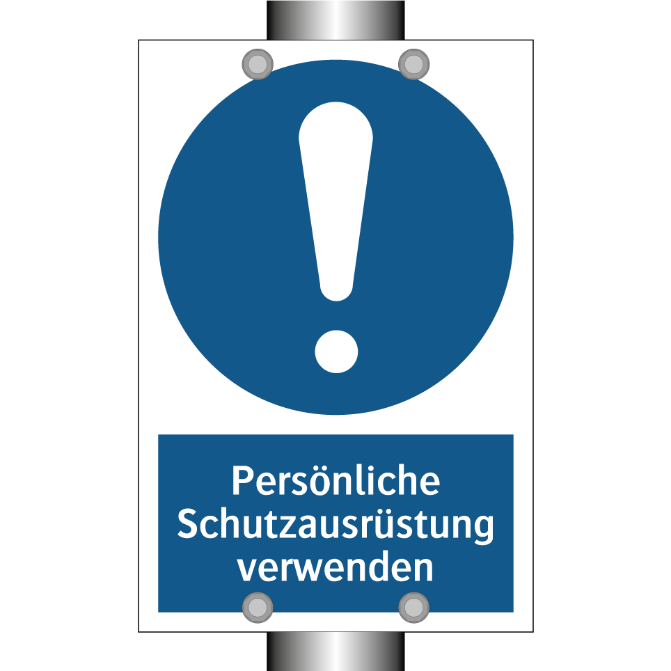 Gebotsschild mit dem Text Persönliche Schutzausrüstung verwenden