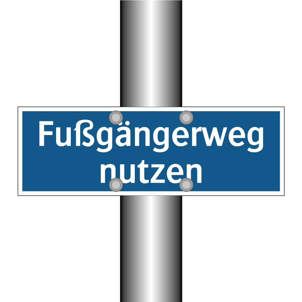 Gebotsschild mit dem Text Fußgängerweg nutzen