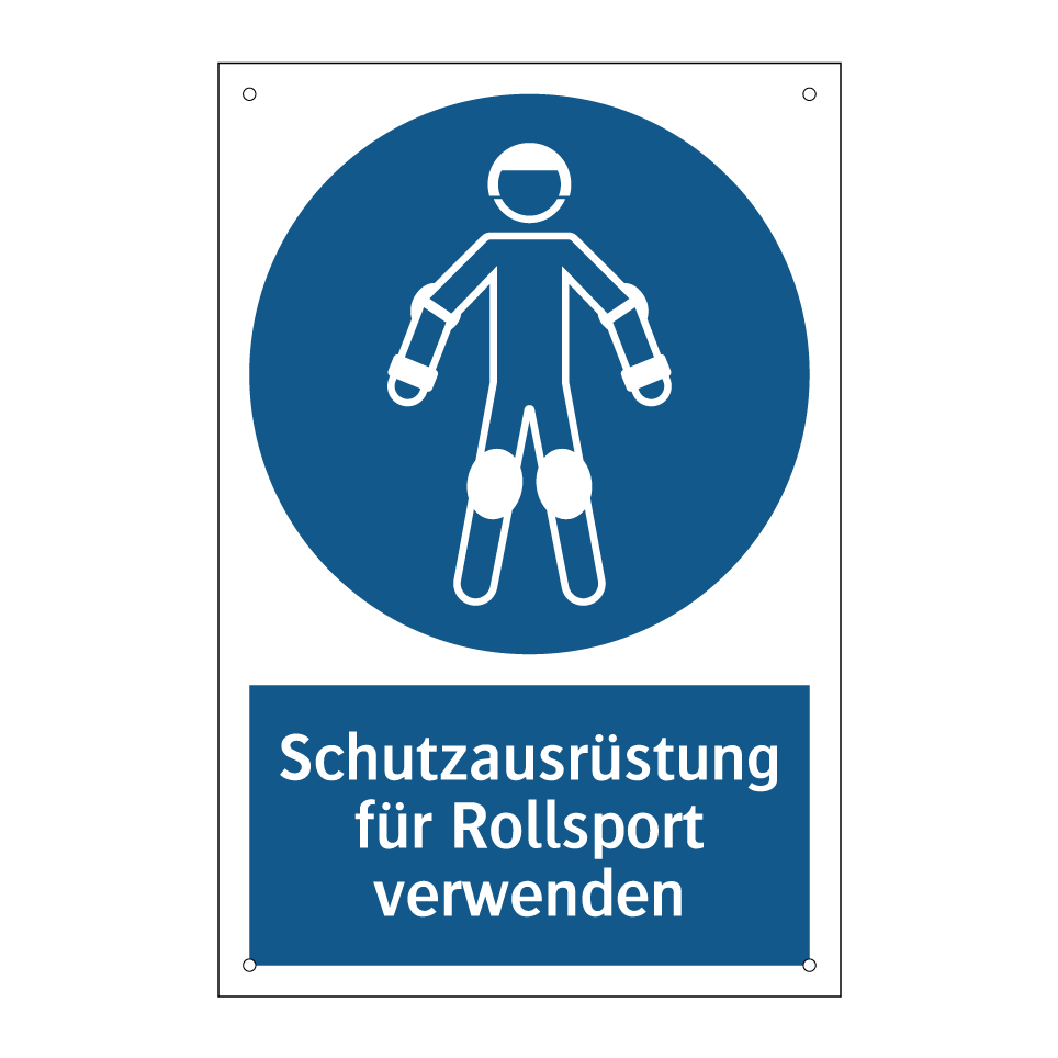 Gebotsschild mit dem Text Schutzausrüstung für Rollsport verwenden