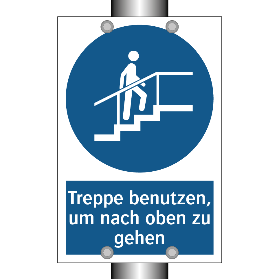 Gebotsschild mit dem Text Treppe benutzen, um nach oben zu gehen