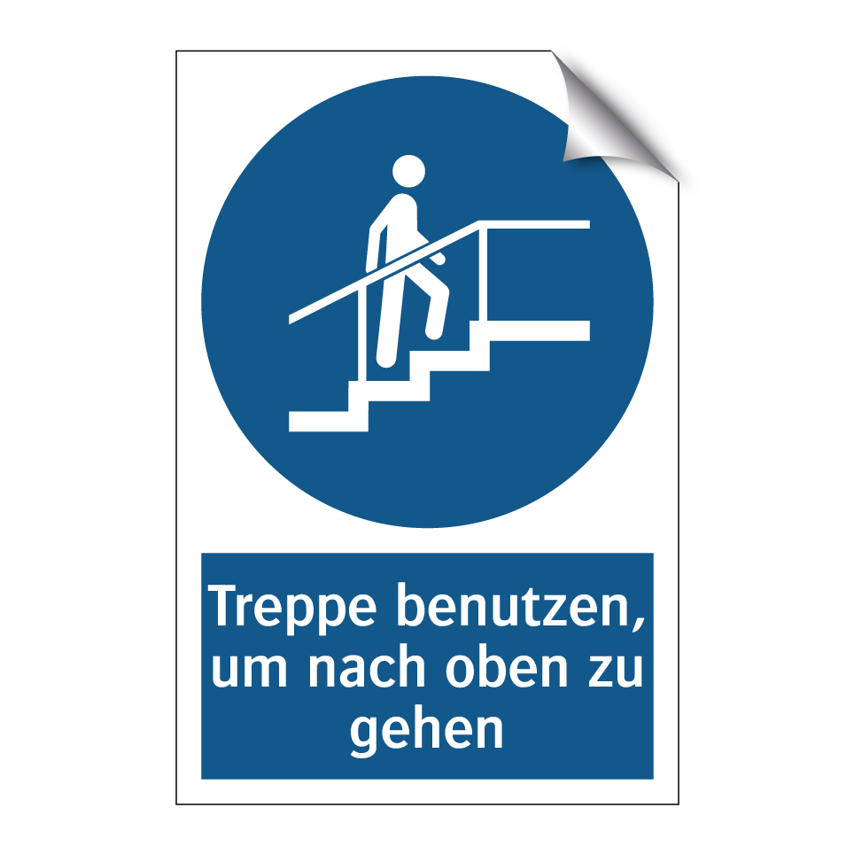 Diese Gebotsschild ist ideal für den Einsatz in Gebäuden, in denen die Nutzung der Treppe gefördert werden soll. Mit ihrer klaren blauen Hintergrundfarbe und dem auffälligen weißen Text zieht sie die Aufmerksamkeit auf sich und erinnert die Menschen daran, die Treppe zu benutzen, um nach oben zu gelangen. Diese Beschilderung eignet sich hervorragend für Bürogebäude, Schulen, Einkaufszentren und andere öffentliche Einrichtungen, wo die Sicherheit und der reibungslose Personenfluss wichtig sind. Platzieren Sie sie an strategischen Punkten wie Eingängen, Treppenhäusern oder Aufzugsvorräumen, um die Besucher effektiv zu leiten und die Nutzung der Treppe zu fördern.