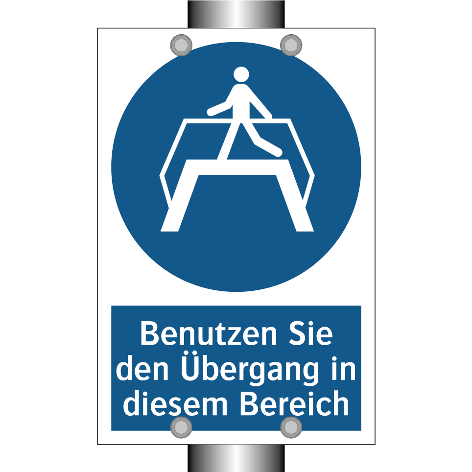 Gebotsschild mit dem Text Benutzen Sie den Übergang in diesem Bereich