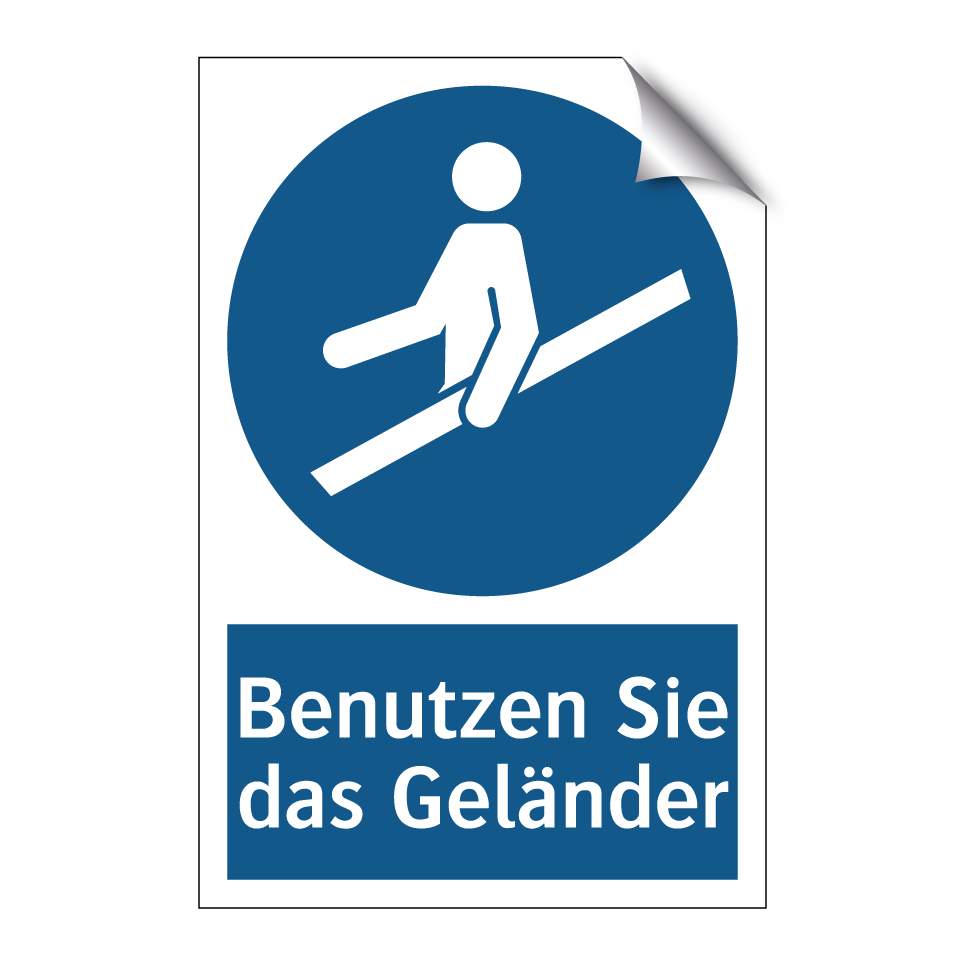 Gebotsschild mit dem Text Benutzen Sie das Geländer