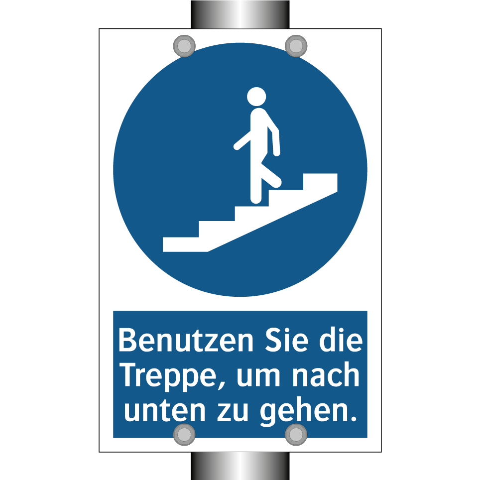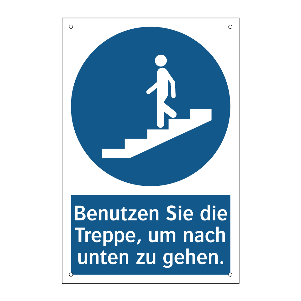Gebotsschild mit dem Text Benutzen Sie die Treppe, um nach unten zu gehen.