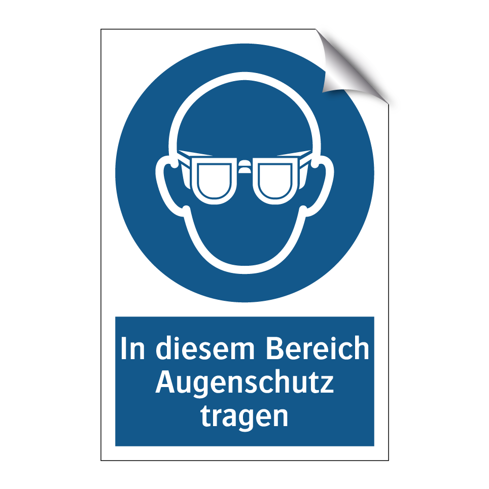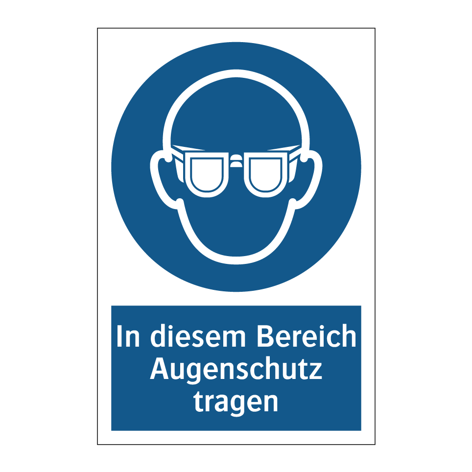 Gebotsschild mit dem Text In diesem Bereich Augenschutz tragen