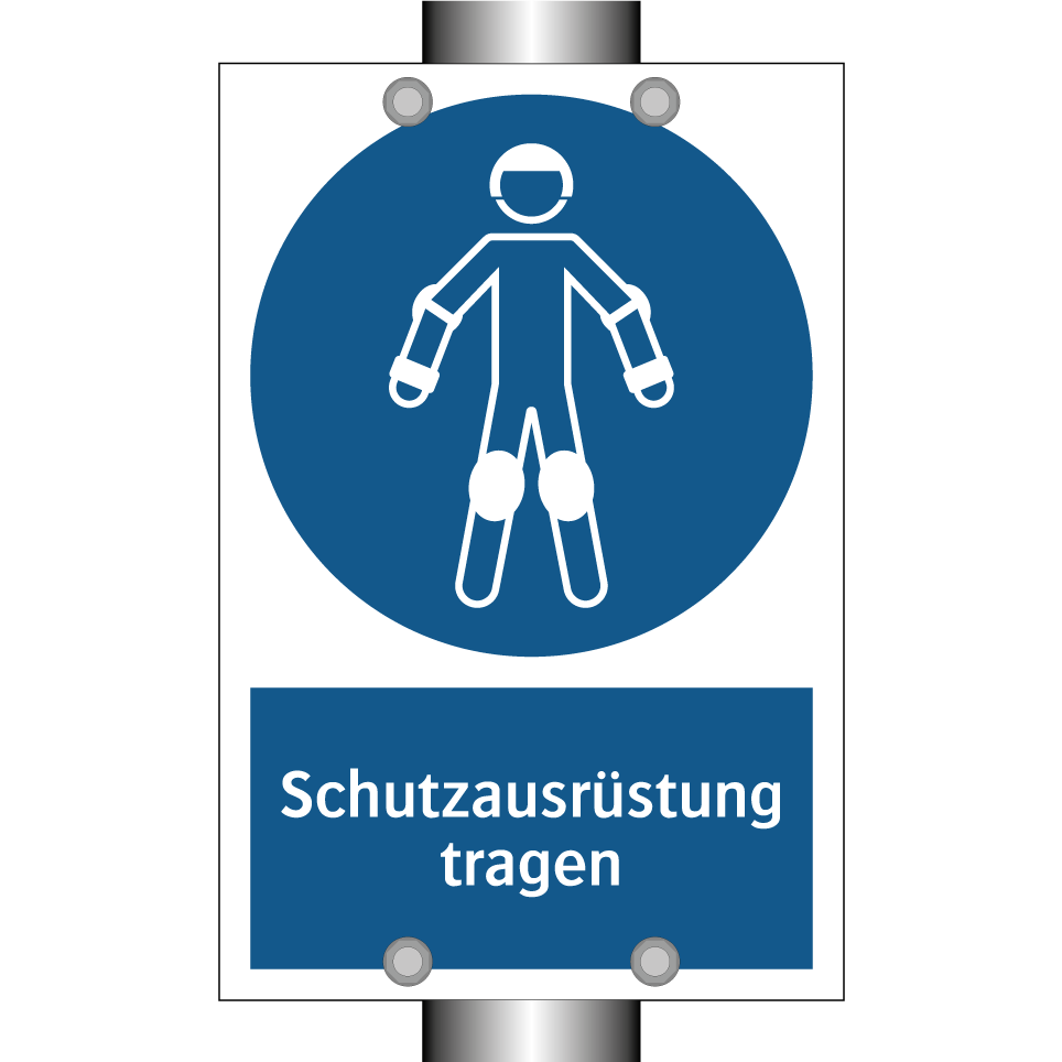 Gebotsschild mit dem Text Schutzausrüstung tragen
