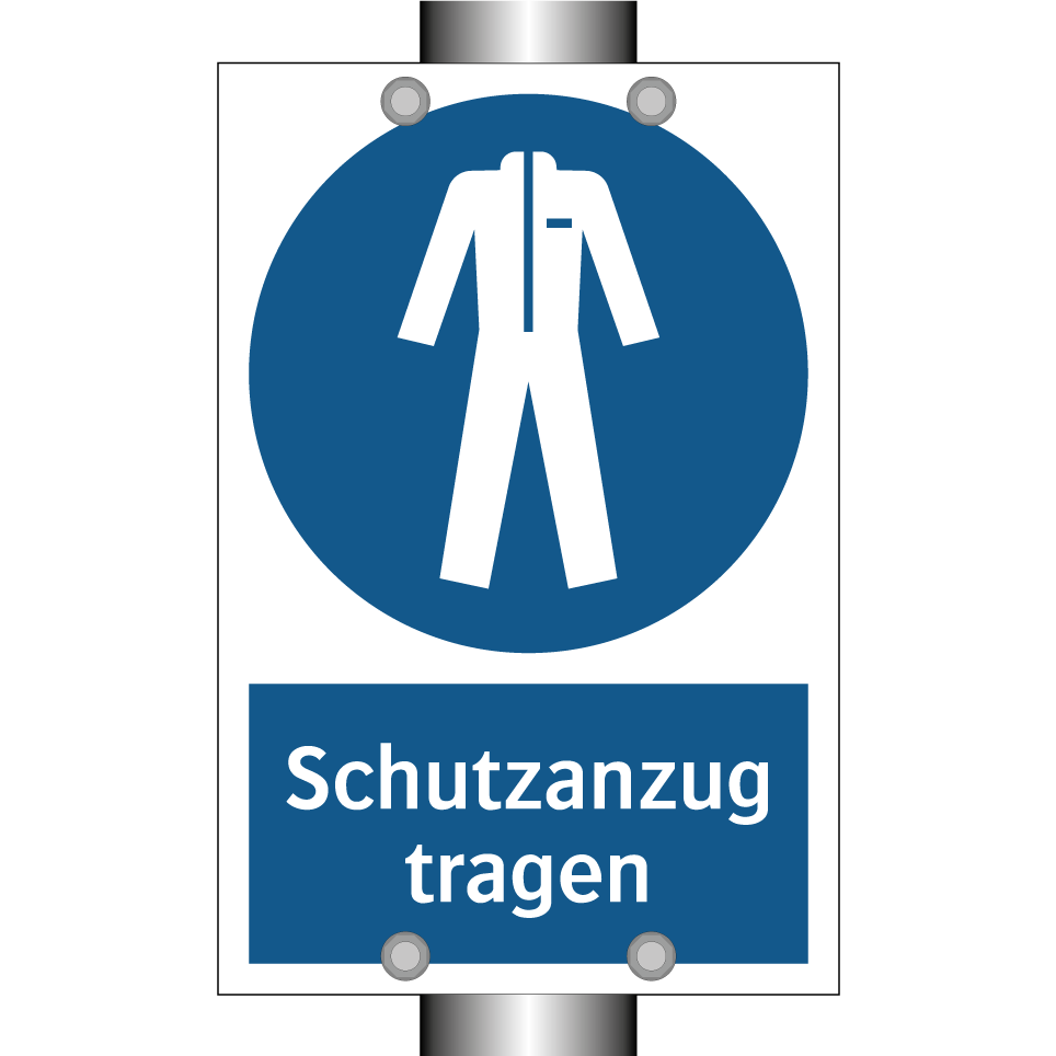 Diese Gebotsschild mit blauem Hintergrund und weißer Schrift ist ein unverzichtbares Element für die Sicherheit am Arbeitsplatz. Sie erinnert daran, dass das Tragen eines Schutzanzugs in bestimmten Bereichen obligatorisch ist. Ideal für den Einsatz in industriellen Umgebungen, Laboren oder Baustellen, wo Schutzkleidung erforderlich ist, um die Sicherheit der Mitarbeiter zu gewährleisten. Diese Sicherheitsanweisung kann an Eingängen, in Umkleideräumen oder direkt in Arbeitsbereichen angebracht werden, um sicherzustellen, dass alle Mitarbeiter und Besucher die notwendigen Schutzmaßnahmen ergreifen. Die klare Symbolik und der prägnante Text machen die Botschaft unmissverständlich und fördern die Einhaltung der Sicherheitsvorschriften.