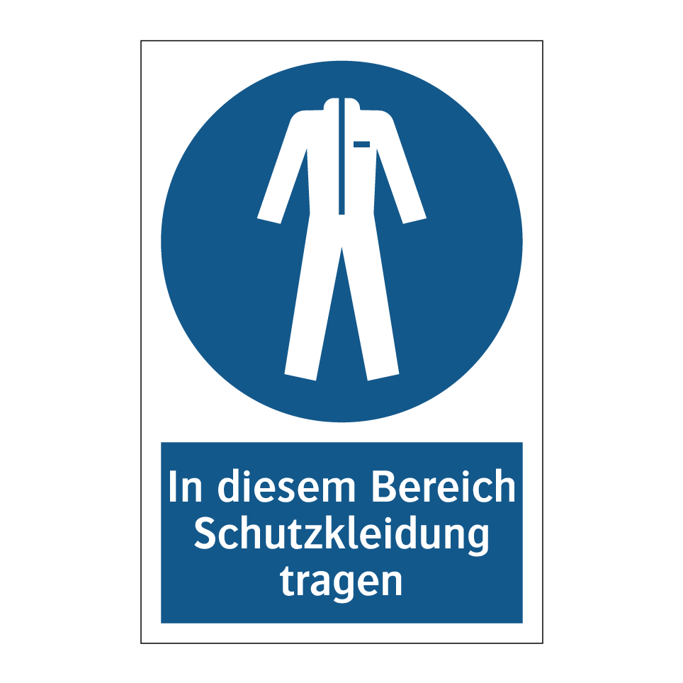 Diese Gebotsschild ist ein unverzichtbares Element für die Sicherheit am Arbeitsplatz. Mit ihrer auffälligen blauen Hintergrundfarbe und der klaren weißen Schrift fordert sie dazu auf, in bestimmten Bereichen Schutzkleidung zu tragen. Ideal für den Einsatz in Fabriken, Baustellen oder Laboren, wo das Tragen von Schutzkleidung unerlässlich ist, um Unfälle zu vermeiden. Diese Gebotsschilder können an Eingängen, in Umkleideräumen oder direkt in Arbeitsbereichen angebracht werden, um sicherzustellen, dass alle Mitarbeiter und Besucher die Sicherheitsvorschriften einhalten. Durch die strategische Platzierung dieser Schilder wird das Bewusstsein für Sicherheitsmaßnahmen erhöht und das Risiko von Verletzungen minimiert.