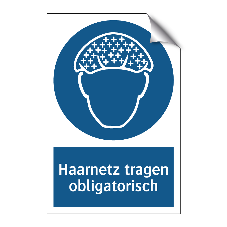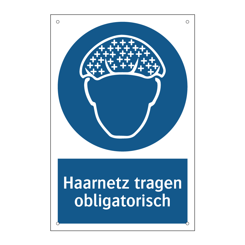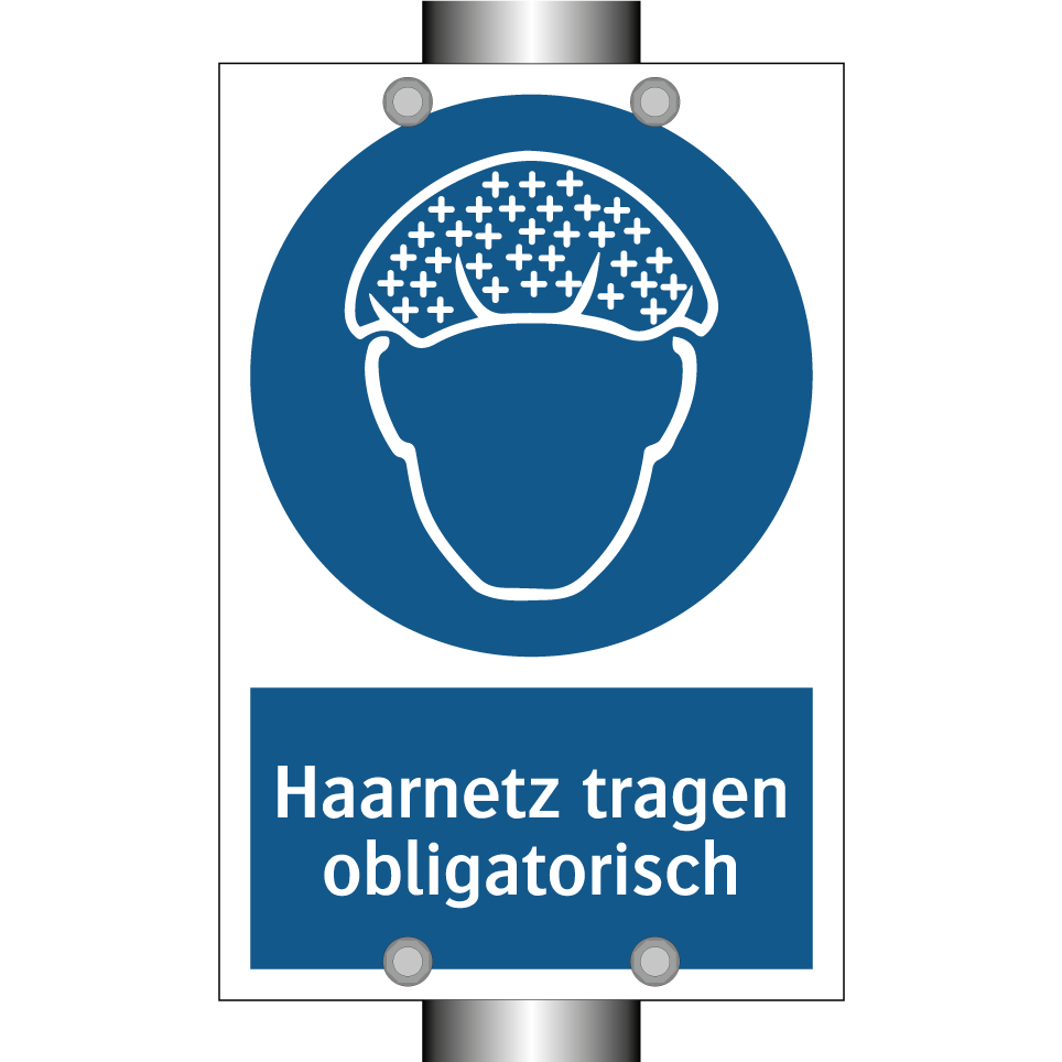 Gebotsschild mit dem Text Haarnetz tragen obligatorisch