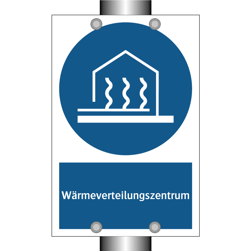 Gebotsschild mit dem Text Wärmeverteilungszentrum