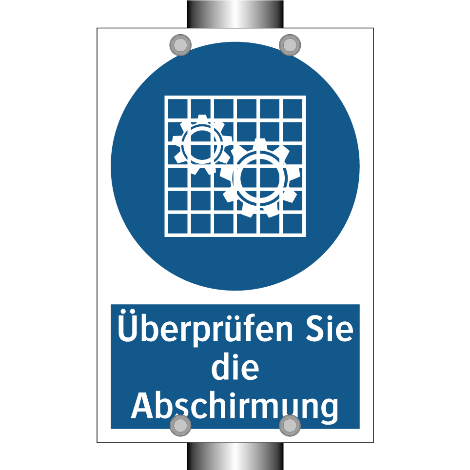 Gebotsschild mit dem Text Überprüfen Sie die Abschirmung