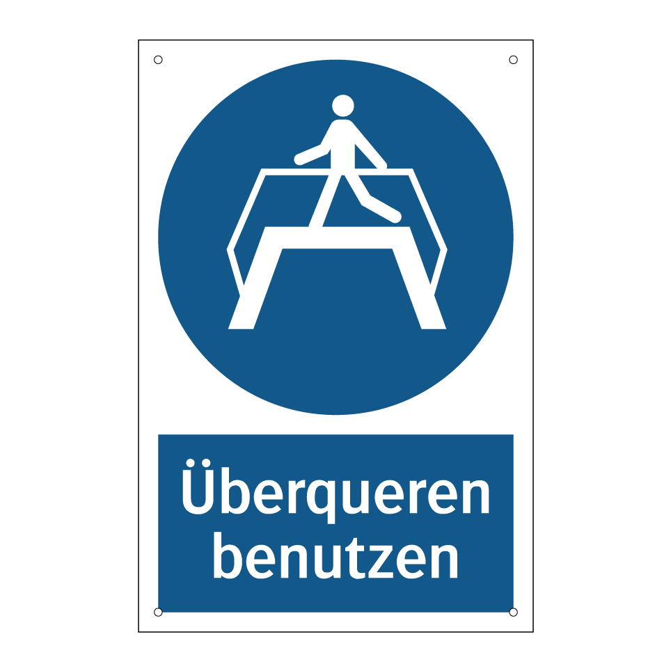 Diese Gebotsschild ist ideal für Bereiche, in denen Fußgänger sicher geleitet werden sollen. Mit ihrer auffälligen blauen Hintergrundfarbe und dem klaren Symbol sorgt sie dafür, dass Passanten den vorgesehenen Übergang nutzen. Diese Beschilderung ist besonders nützlich an stark frequentierten Straßen, in der Nähe von Schulen oder an Baustellen, wo die Sicherheit der Fußgänger oberste Priorität hat. Sie kann an Zäunen, Wänden oder Pfosten angebracht werden, um die Aufmerksamkeit der Passanten zu erregen und sie zu einem sicheren Verhalten zu ermutigen. Diese Gebotsschilder sind ein unverzichtbares Element für die Gewährleistung der Sicherheit in öffentlichen und privaten Bereichen.