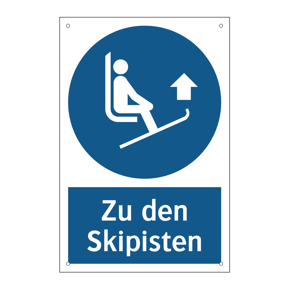 Diese Gebotsschild ist ideal für Wintersportgebiete und weist den Weg zu den Skipisten. Mit ihrer auffälligen blauen Hintergrundfarbe und der klaren weißen Schrift sorgt sie dafür, dass Besucher problemlos den richtigen Weg finden. Diese Beschilderung ist besonders nützlich an Kreuzungen, in Skigebieten oder an Eingängen zu Skiliften. Sie kann an Wänden, Pfosten oder anderen gut sichtbaren Stellen angebracht werden, um sicherzustellen, dass Skifahrer und Snowboarder schnell und sicher zu den Pisten gelangen. Diese Wegweiser sind unverzichtbar für eine reibungslose Navigation in jedem Skigebiet.