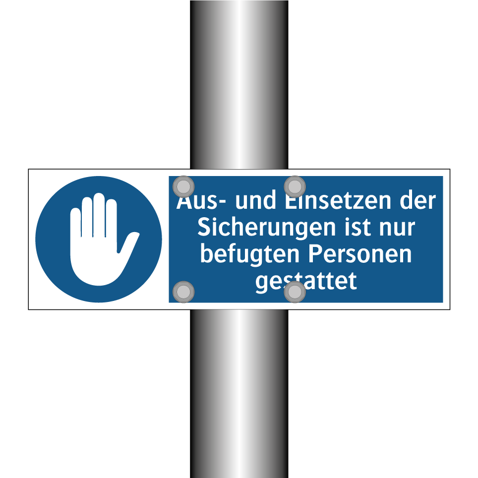 Gebotsschild mit dem Text Aus- und Einsetzen der Sicherungen ist nur befugten Personen gestattet