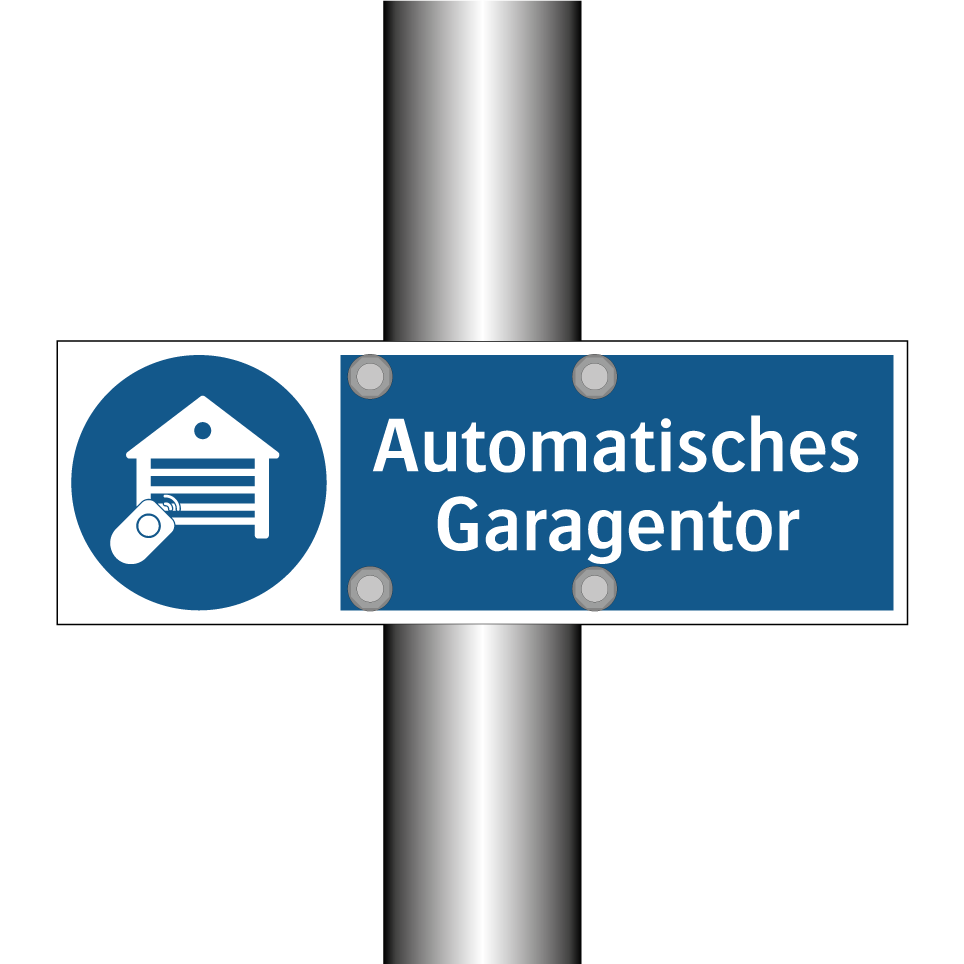 Diese Gebotsschild ist ideal für die Kennzeichnung von Bereichen mit automatischen Garagentoren. Sie dient dazu, Personen darauf hinzuweisen, dass das Tor automatisch öffnet und schließt, um Unfälle zu vermeiden. Diese Beschilderung ist besonders nützlich in Wohnanlagen, Parkhäusern oder gewerblichen Gebäuden, wo automatische Tore häufig verwendet werden. Die klare blaue Hintergrundfarbe und die weiße Schrift sorgen dafür, dass die Botschaft auch aus der Ferne gut sichtbar ist. Platzieren Sie das Schild an gut einsehbaren Stellen, um sicherzustellen, dass alle Verkehrsteilnehmer die wichtige Information rechtzeitig wahrnehmen.
