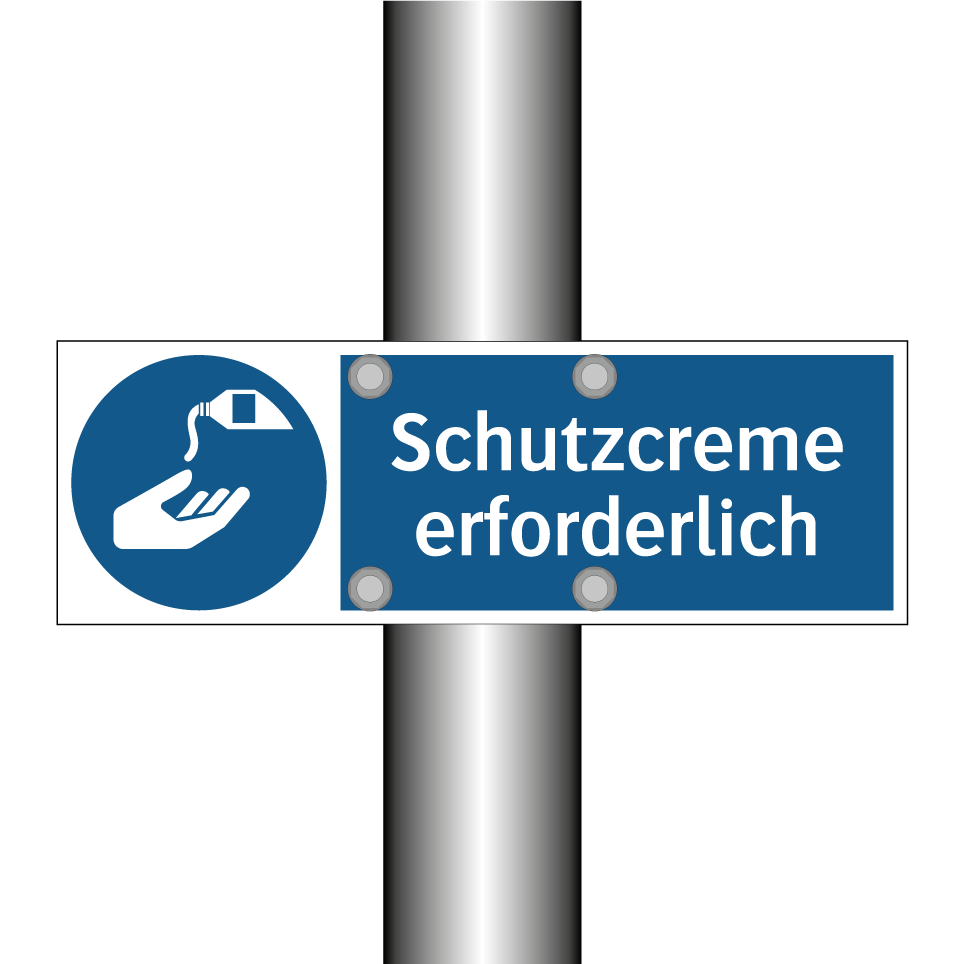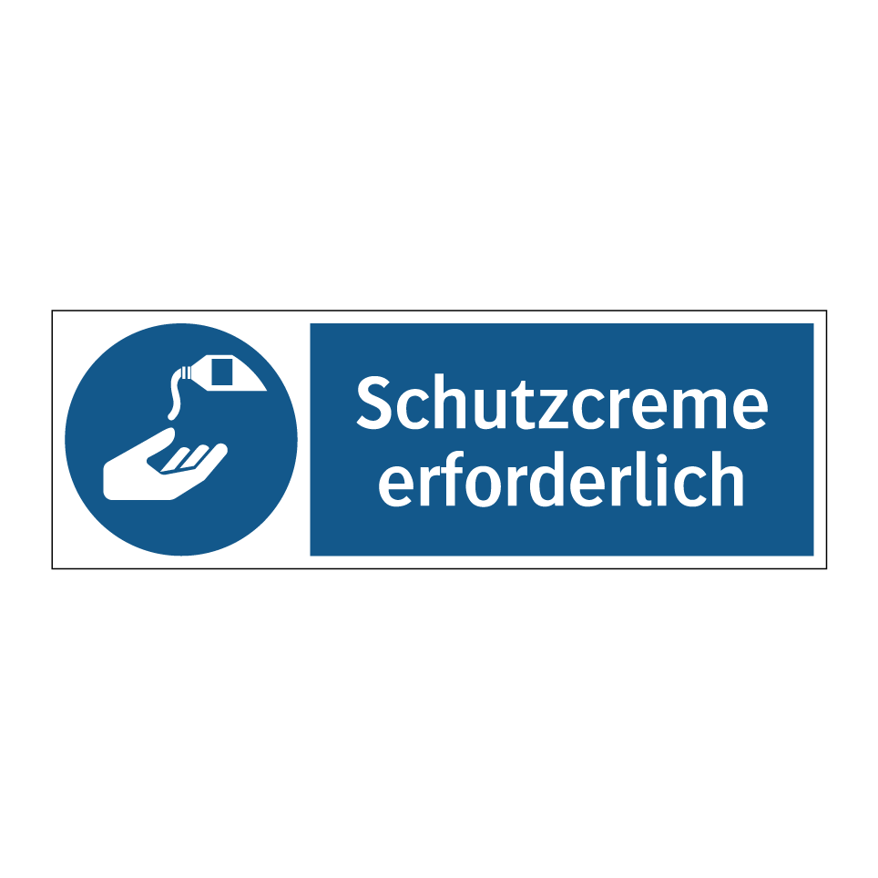 Gebotsschild mit dem Text Schutzcreme erforderlich