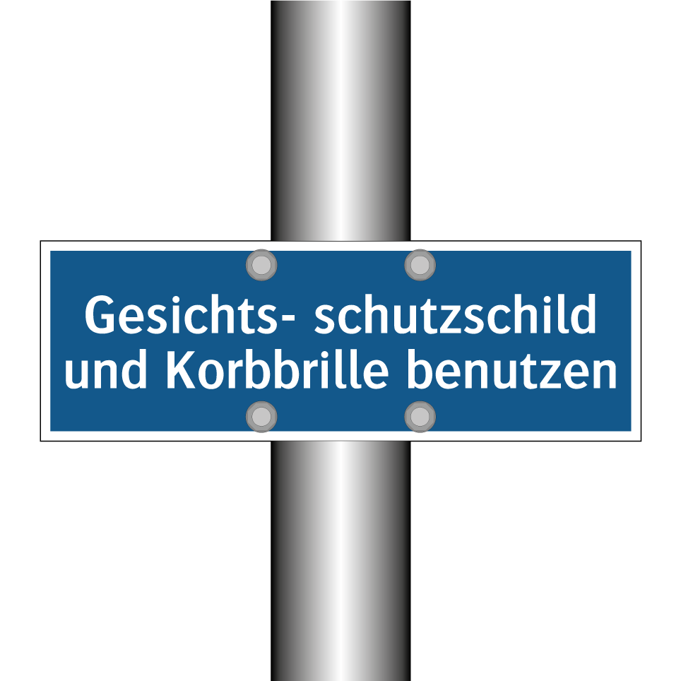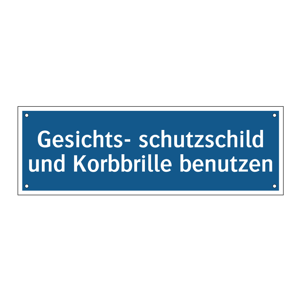 Gebotsschild mit dem Text Gesichts- schutzschild und Korbbrille benutzen