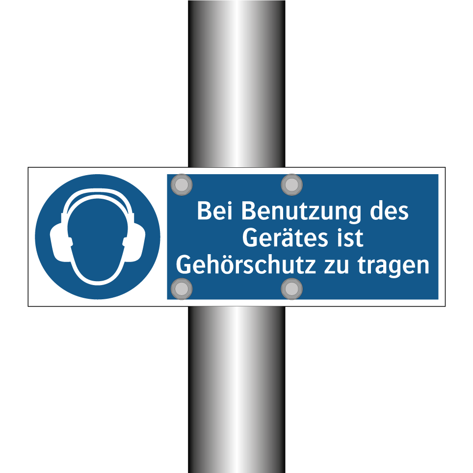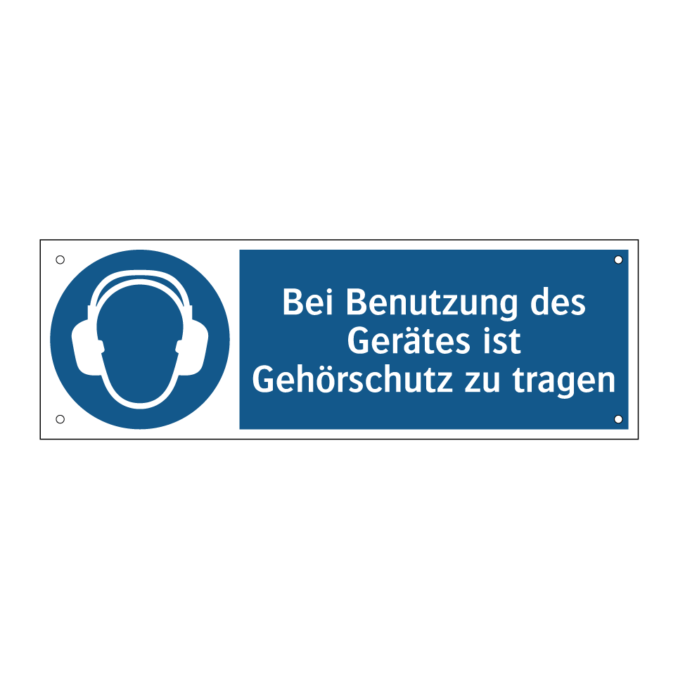 Gebotsschild mit dem Text Bei Benutzung des Gerätes ist Gehörschutz zu tragen