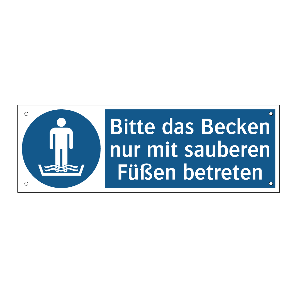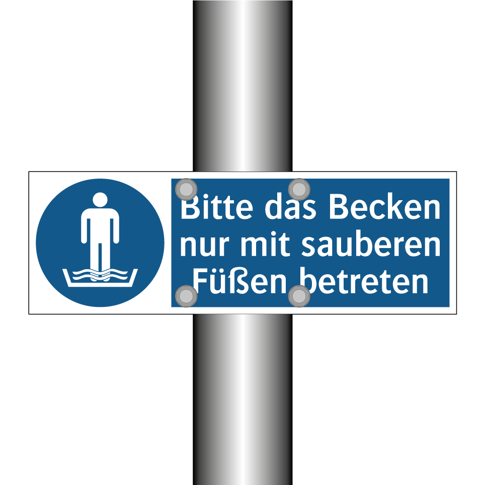 Gebotsschild mit dem Text Bitte das Becken nur mit sauberen Füßen betreten