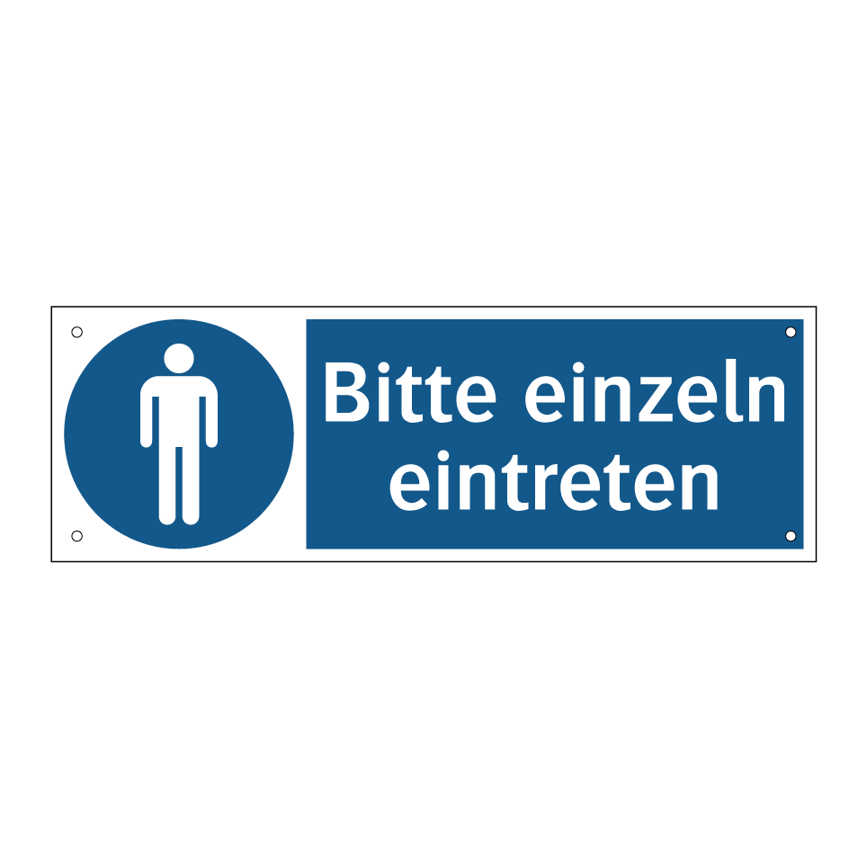 Gebotsschild mit dem Text Bitte einzeln eintreten