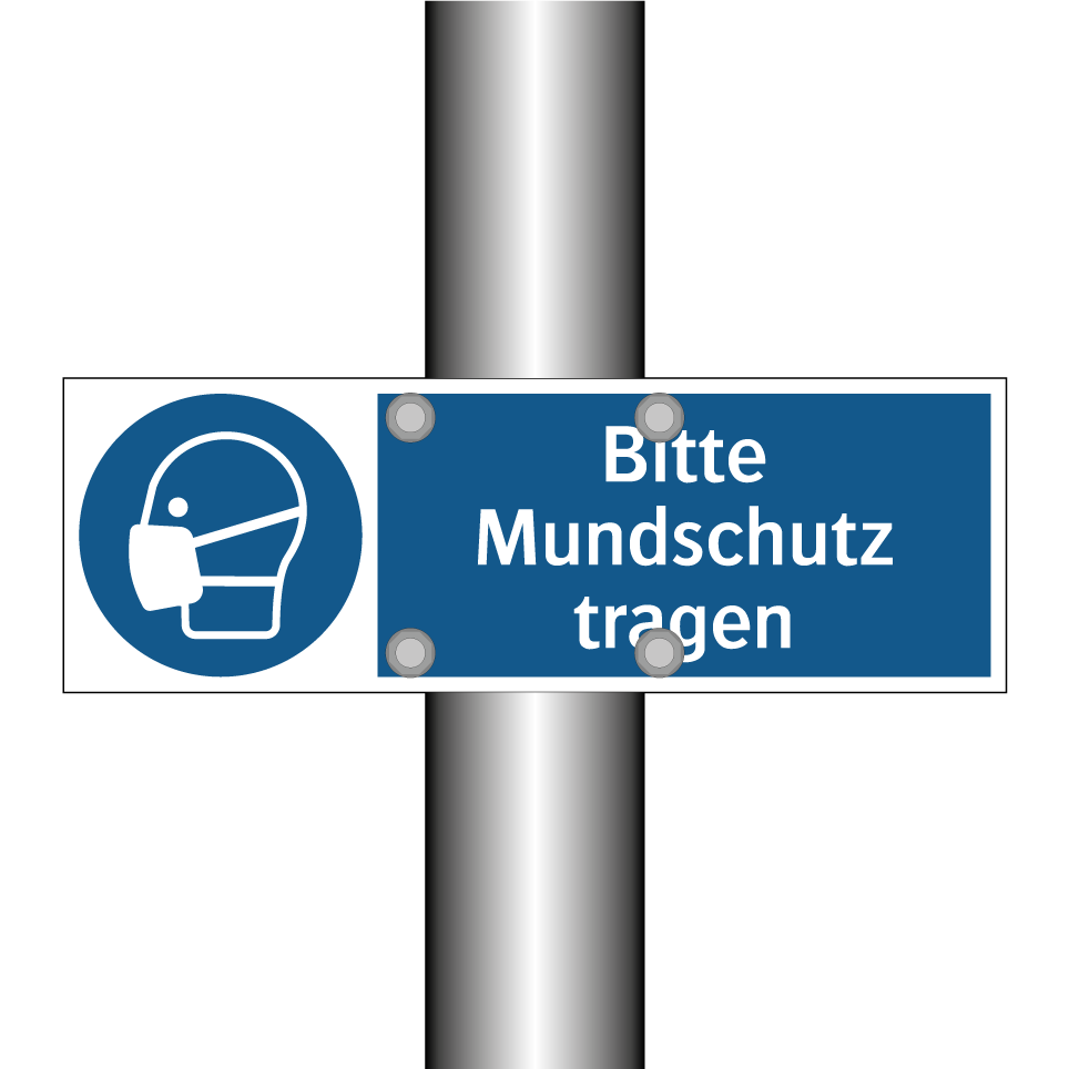Gebotsschild mit dem Text Bitte Mundschutz tragen