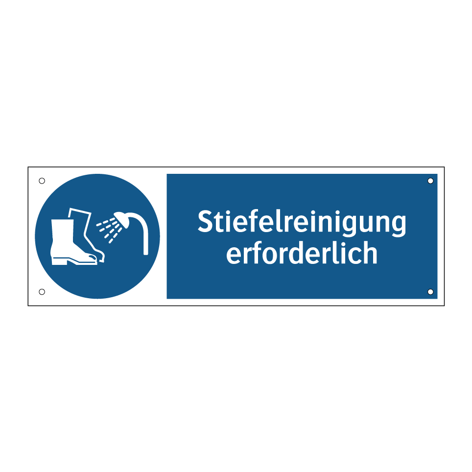 Gebotsschild mit dem Text Stiefelreinigung erforderlich