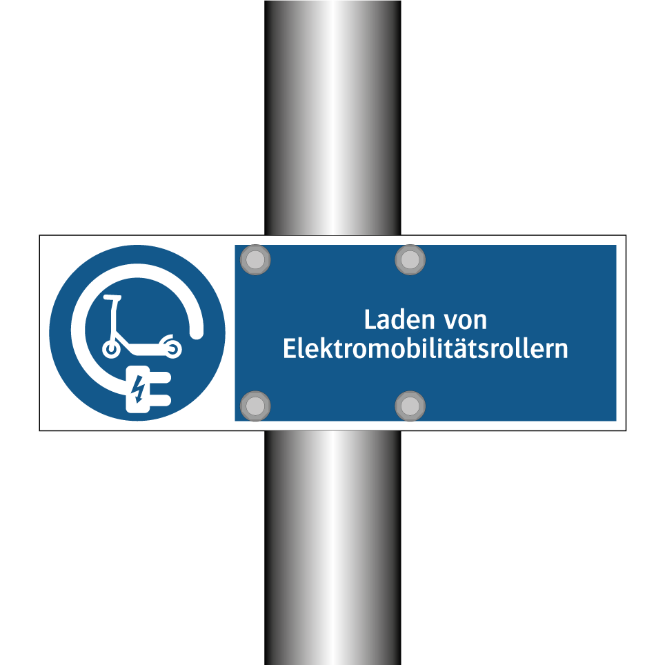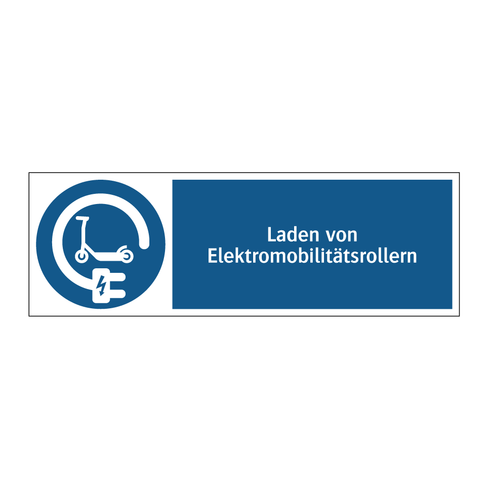 Gebotsschild mit dem Text Laden von Elektromobilitätsrollern