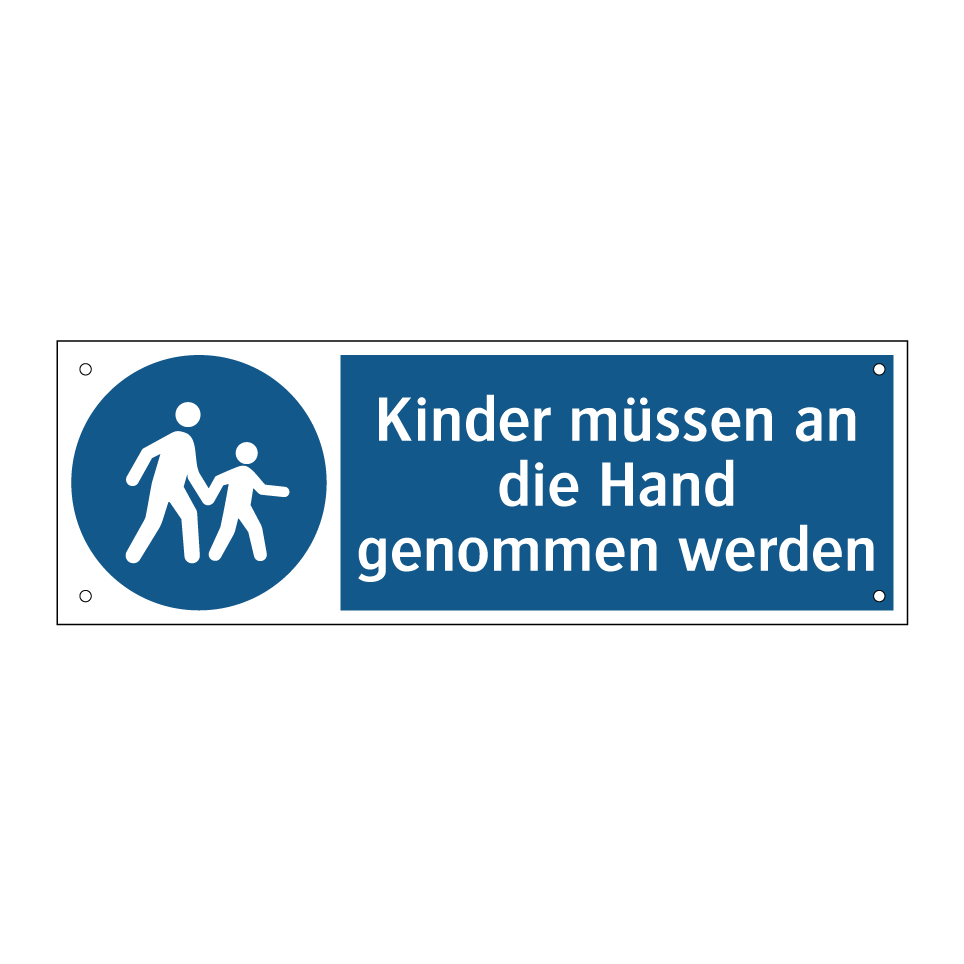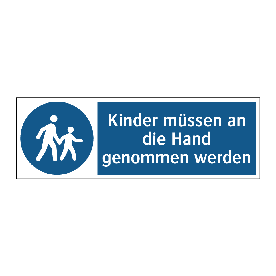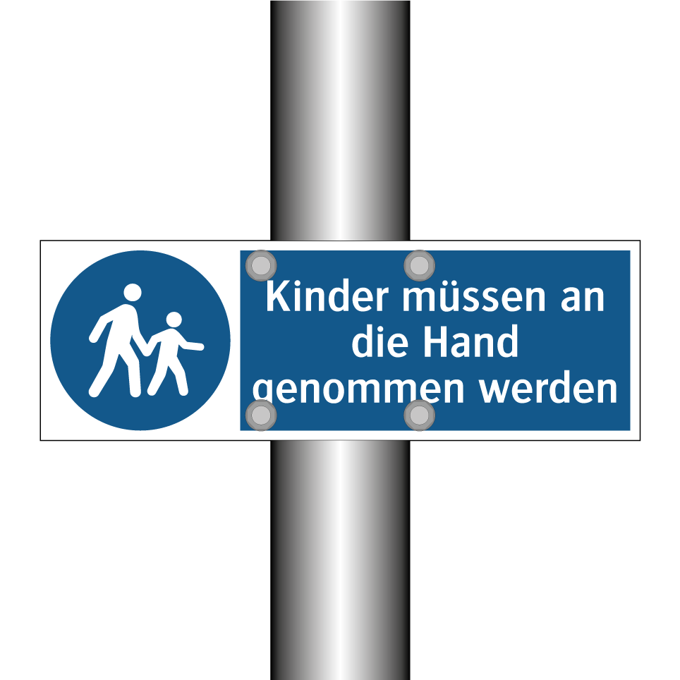 Gebotsschild mit dem Text Kinder müssen an die Hand genommen werden