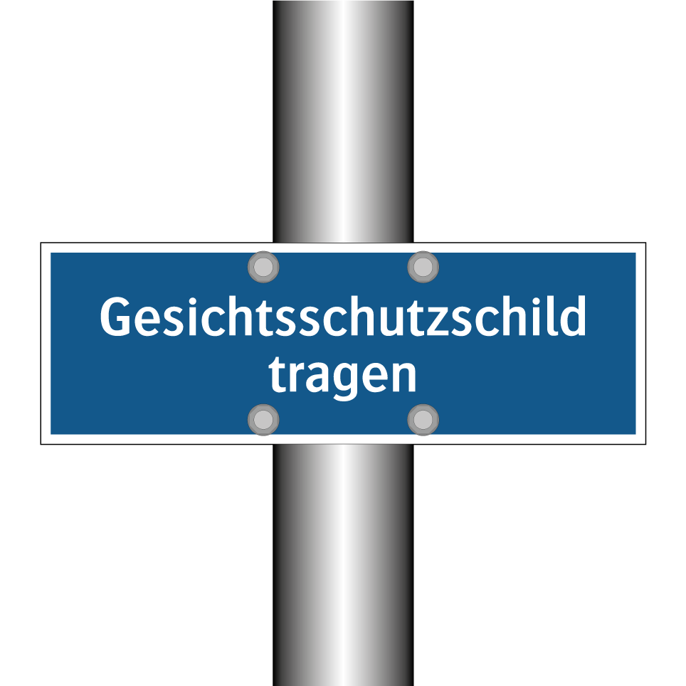 Gebotsschild mit dem Text Gesichtsschutzschild tragen