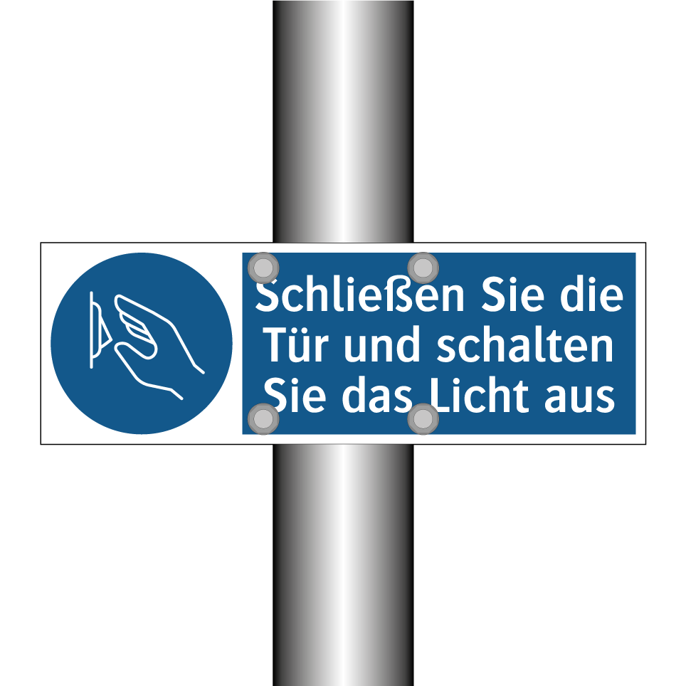 Gebotsschild mit dem Text Schließen Sie die Tür und schalten Sie das Licht aus