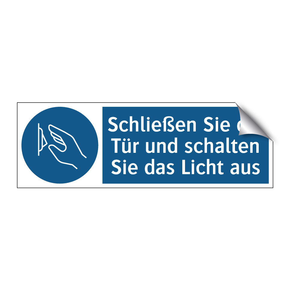 Diese Gebotsschild ist ideal für den Einsatz in Büros, Schulen und öffentlichen Gebäuden, um sicherzustellen, dass Türen geschlossen und Lichter ausgeschaltet werden. Mit ihrer auffälligen blauen Hintergrundfarbe und klaren weißen Symbolik zieht sie sofort die Aufmerksamkeit auf sich und erinnert die Menschen an wichtige Sicherheits- und Energiesparmaßnahmen. Platzieren Sie diese Gebotsschild an strategischen Orten wie Eingängen, Fluren oder in der Nähe von Lichtschaltern, um maximale Sichtbarkeit und Effektivität zu gewährleisten. Diese visuelle Erinnerung hilft, Energie zu sparen und die Sicherheit in Ihrer Umgebung zu erhöhen. Perfekt für alle, die Ordnung und Effizienz fördern möchten.