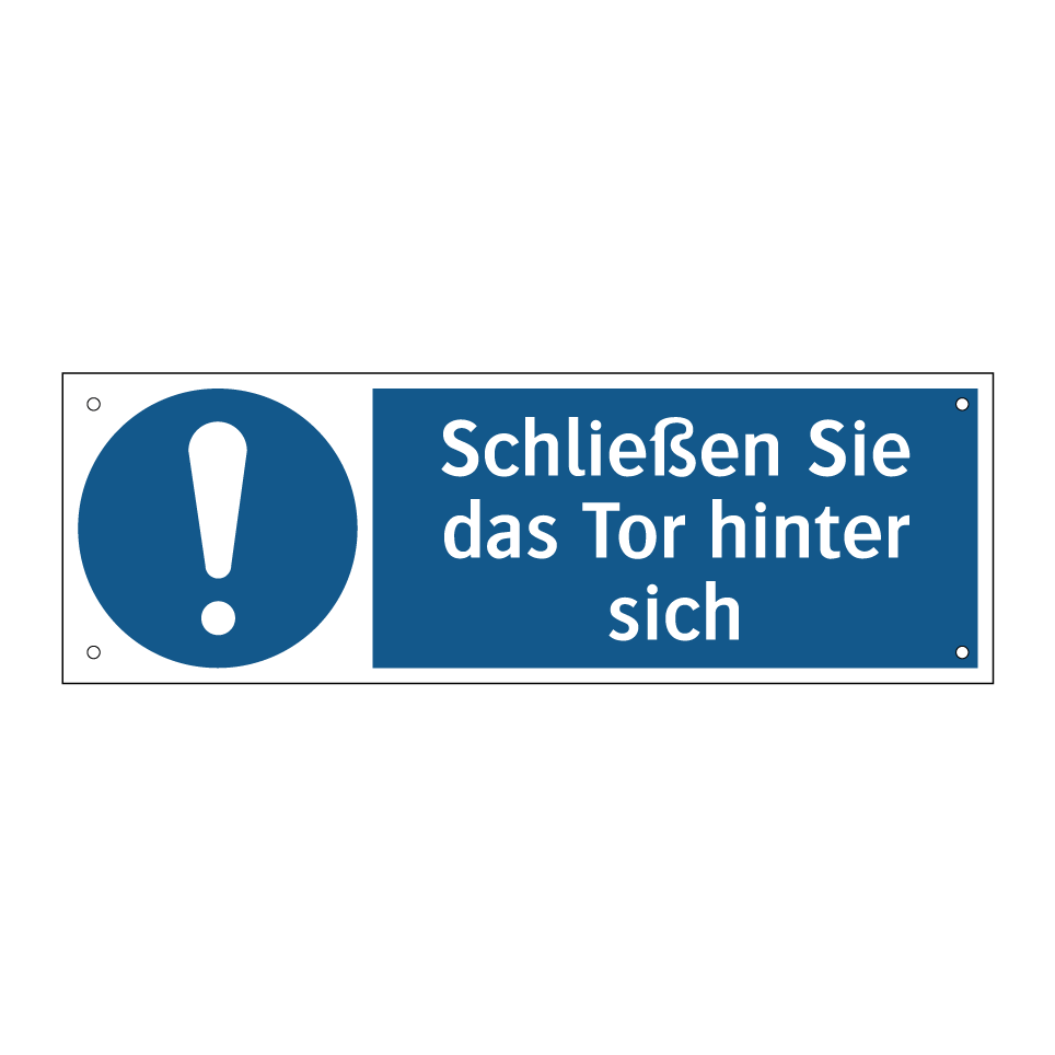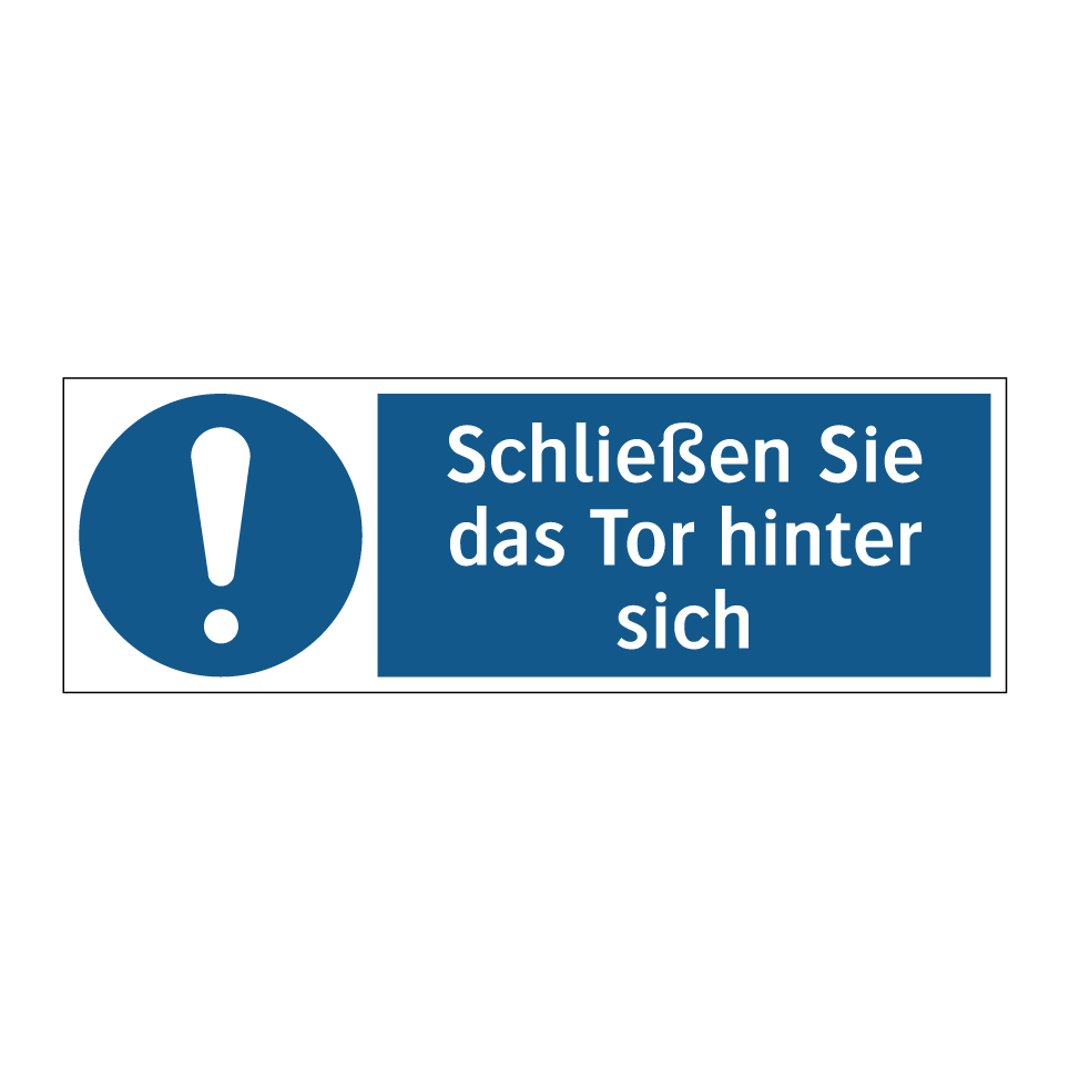 Gebotsschild mit dem Text Schließen Sie das Tor hinter sich