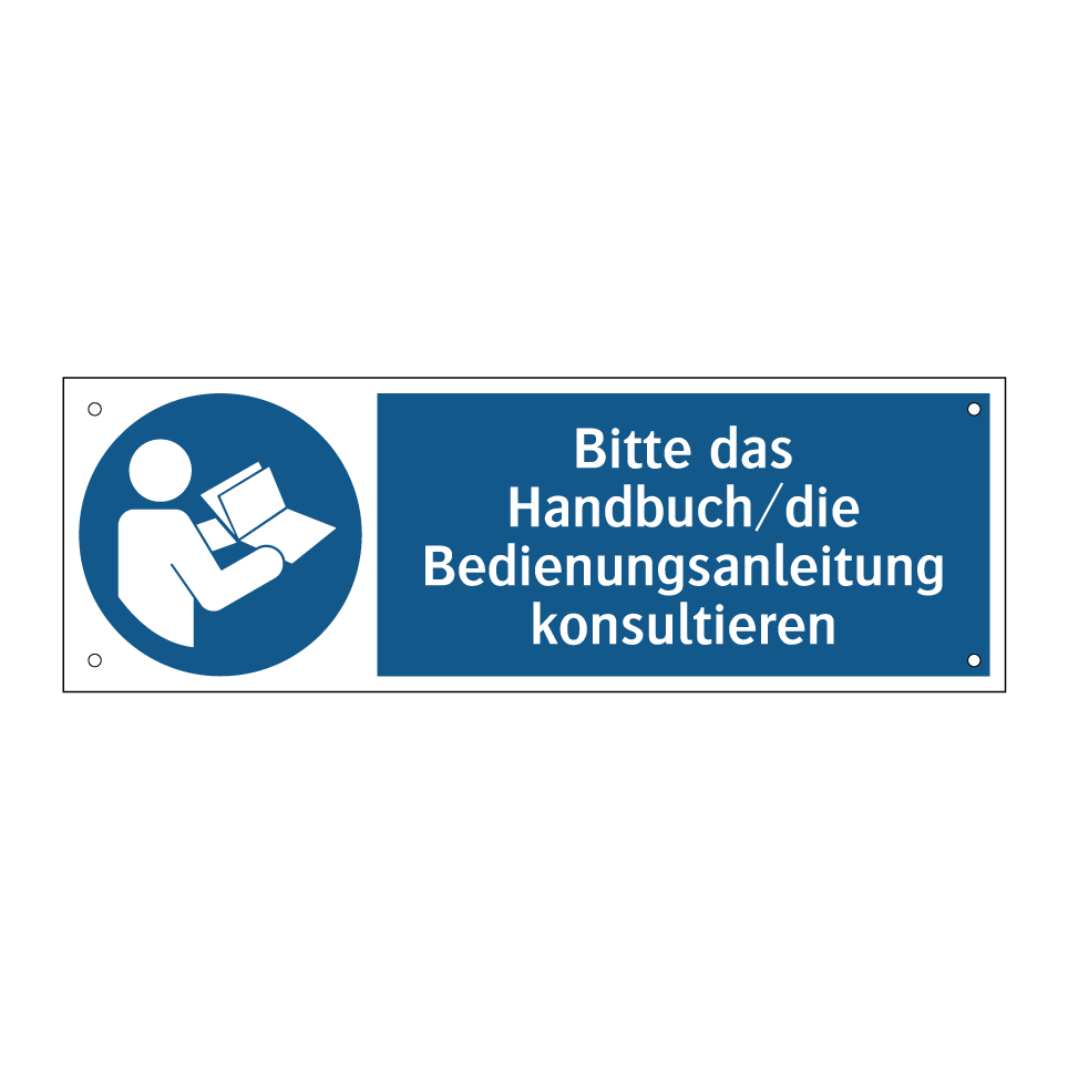 Diese Gebotsschild ist ein unverzichtbares Element für Arbeitsumgebungen, in denen die Sicherheit an erster Stelle steht. Mit ihrer klaren blauen Hintergrundfarbe und der auffälligen weißen Schrift fordert sie dazu auf, das Handbuch oder die Bedienungsanleitung zu konsultieren. Diese Anweisung ist besonders wichtig in Bereichen wie Werkstätten, Fabriken oder Laboren, wo komplexe Maschinen oder Geräte verwendet werden. Die Gebotsschild kann an Eingängen, in Schulungsräumen oder direkt an Maschinen angebracht werden, um sicherzustellen, dass alle Mitarbeiter die notwendigen Informationen zur sicheren Bedienung der Geräte haben. Sie dient als ständige Erinnerung an die Bedeutung der richtigen Handhabung und trägt zur Vermeidung von Unfällen bei.