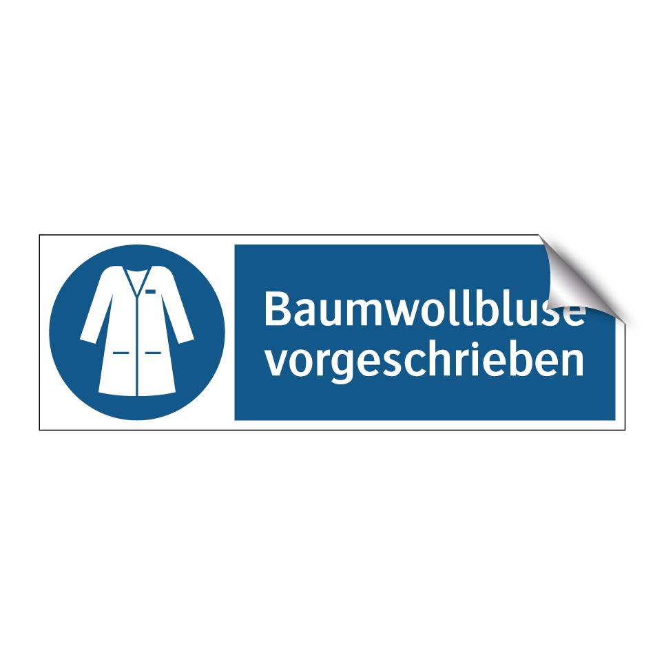 Gebotsschild mit dem Text Baumwollbluse vorgeschrieben