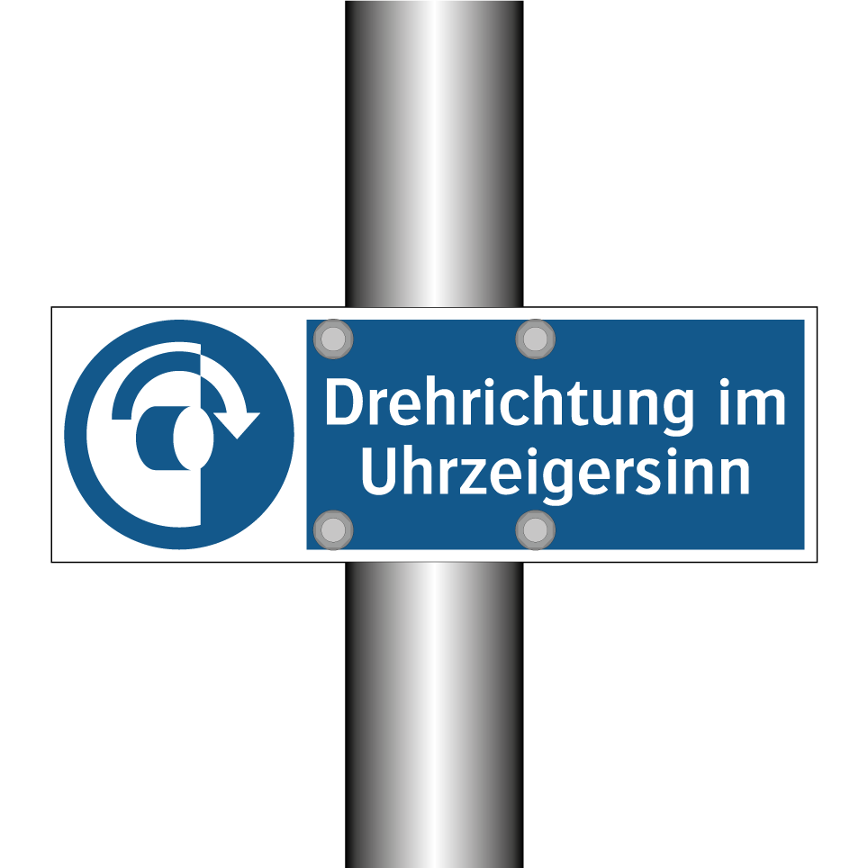 Gebotsschild mit dem Text Drehrichtung im Uhrzeigersinn