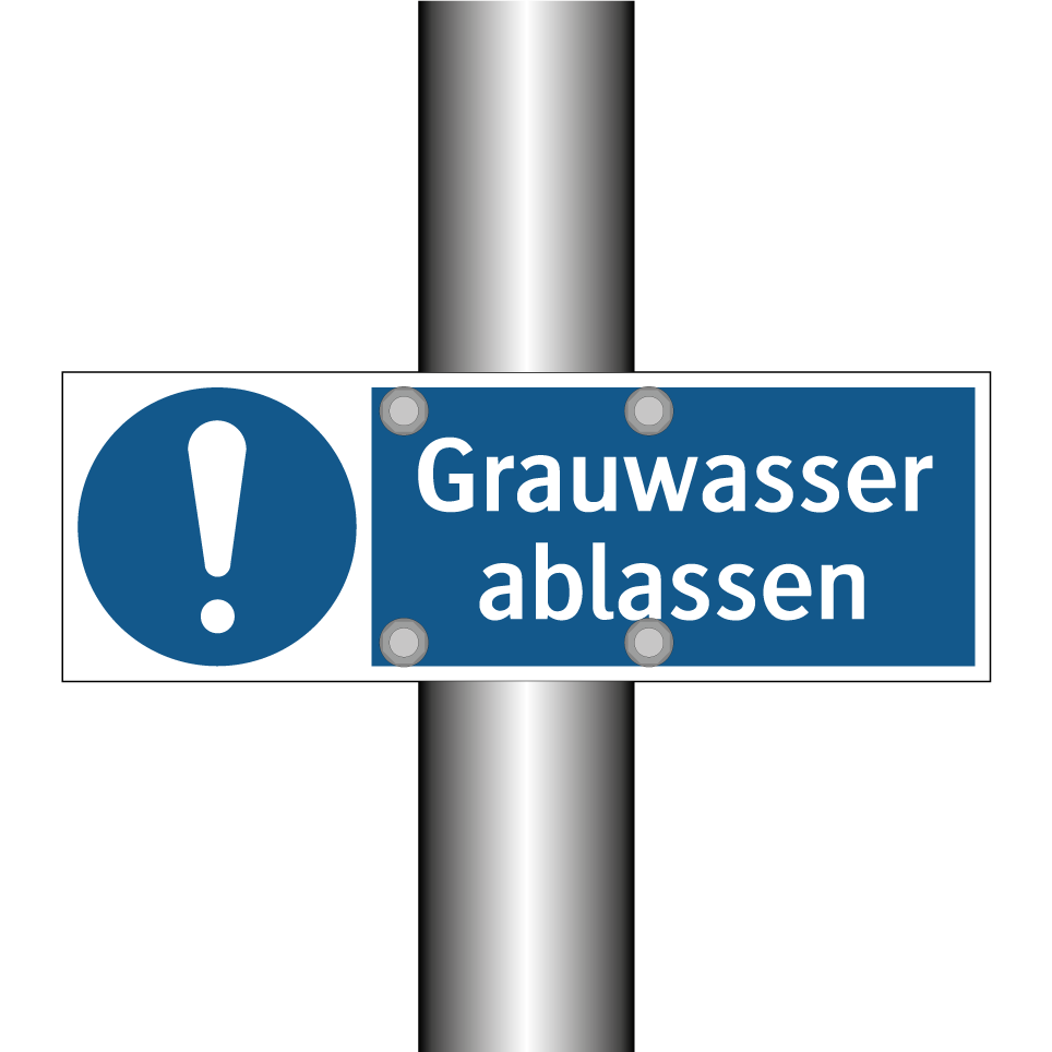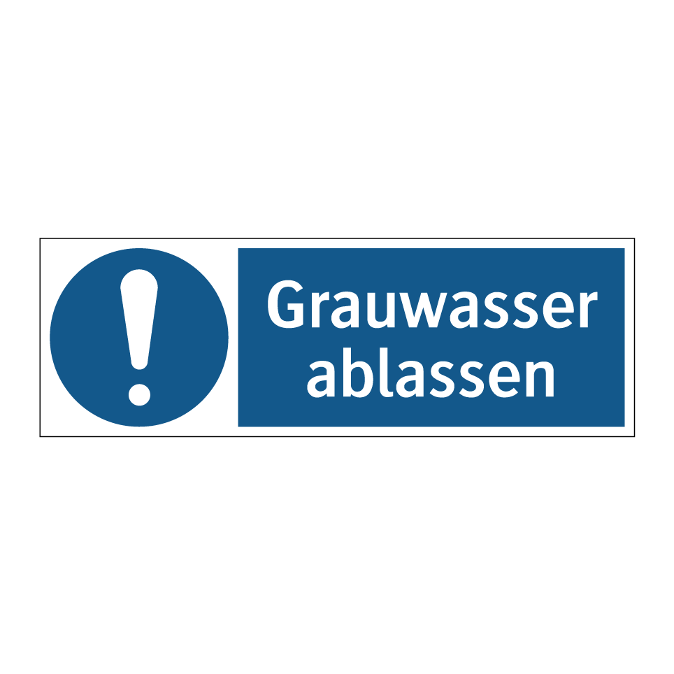 Gebotsschild mit dem Text Grauwasser ablassen