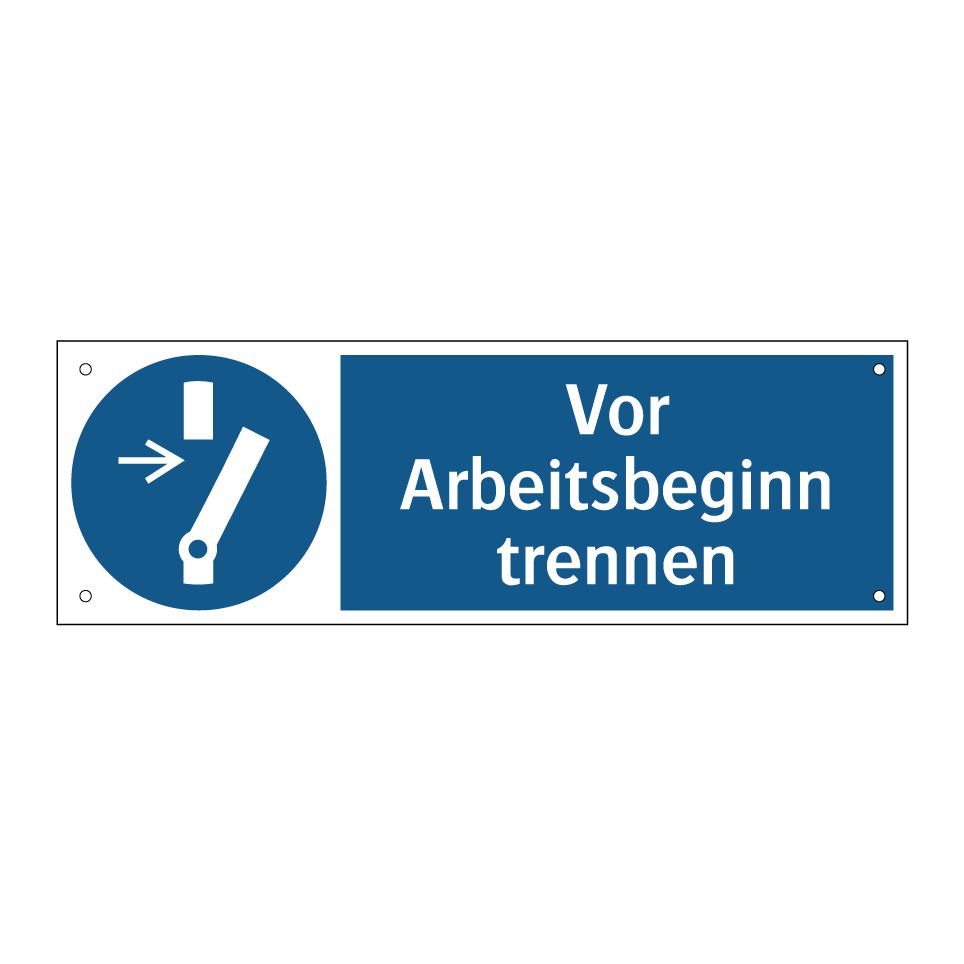 Gebotsschild mit dem Text Vor Arbeitsbeginn trennen