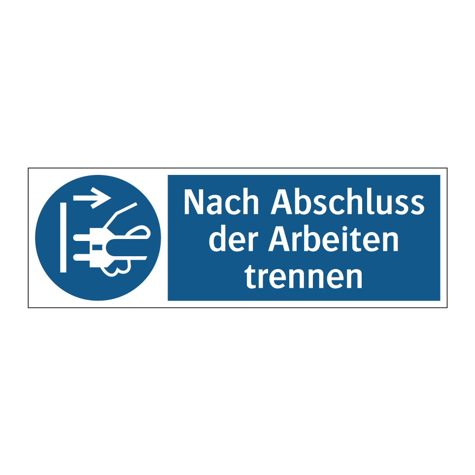 Gebotsschild mit dem Text Nach Abschluss der Arbeiten trennen