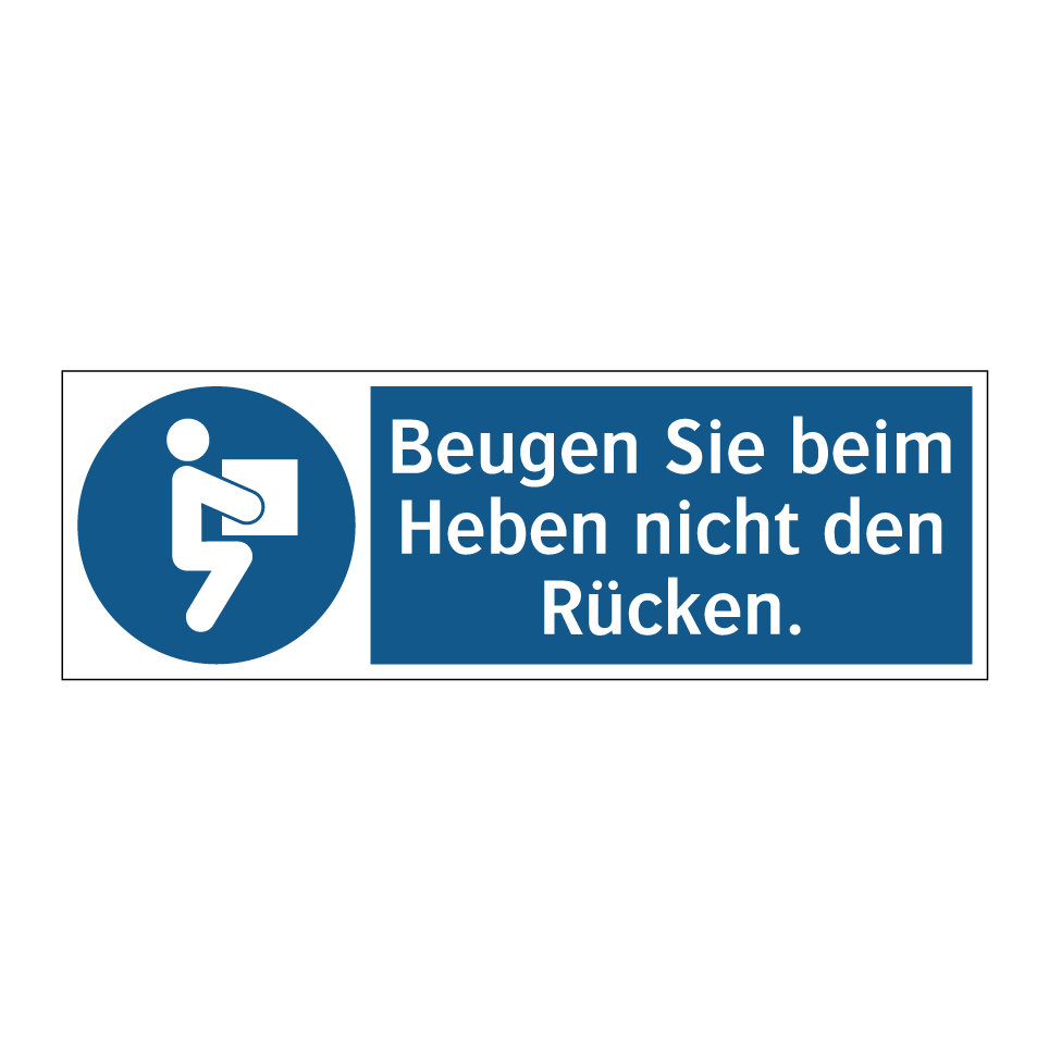 Gebotsschild mit dem Text Beugen Sie beim Heben nicht den Rücken.