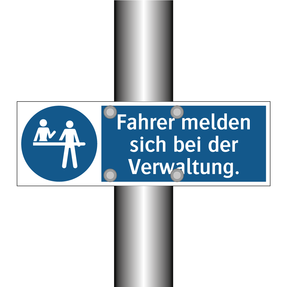 Gebotsschild mit dem Text Fahrer melden sich bei der Verwaltung.