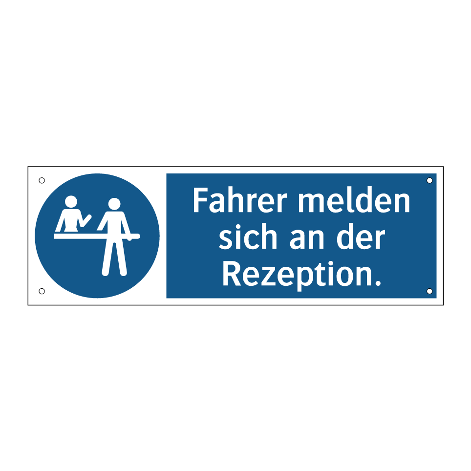Diese Gebotsschild ist ein unverzichtbares Element für jeden Betrieb, der einen reibungslosen Ablauf sicherstellen möchte. Mit ihrer klaren blauen Hintergrundfarbe und der auffälligen weißen Schrift zieht sie sofort die Aufmerksamkeit der Fahrer auf sich. Diese Anweisungstafel ist ideal für den Einsatz an Einfahrten, Parkplätzen oder Lagerhäusern, wo es wichtig ist, dass Fahrer sich an der Rezeption anmelden. Sie dient dazu, den Verkehrsfluss zu regulieren und sicherzustellen, dass alle Besucher ordnungsgemäß registriert werden. Platzieren Sie diese Gebotsschild an gut sichtbaren Stellen, um maximale Effektivität zu gewährleisten und die Sicherheit sowie den organisatorischen Ablauf zu optimieren.