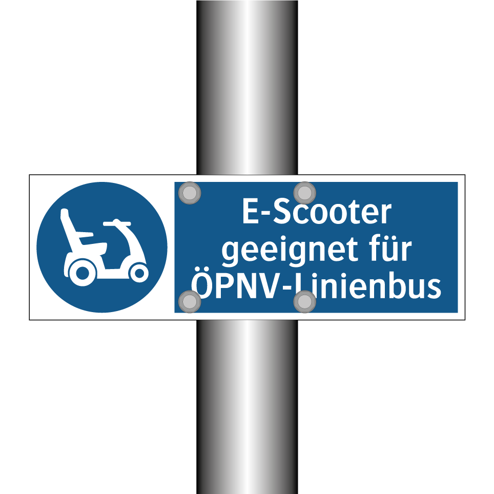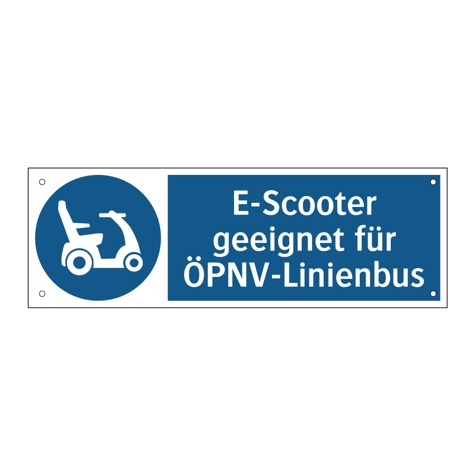 Gebotsschild mit dem Text E-Scooter geeignet für ÖPNV-Linienbus