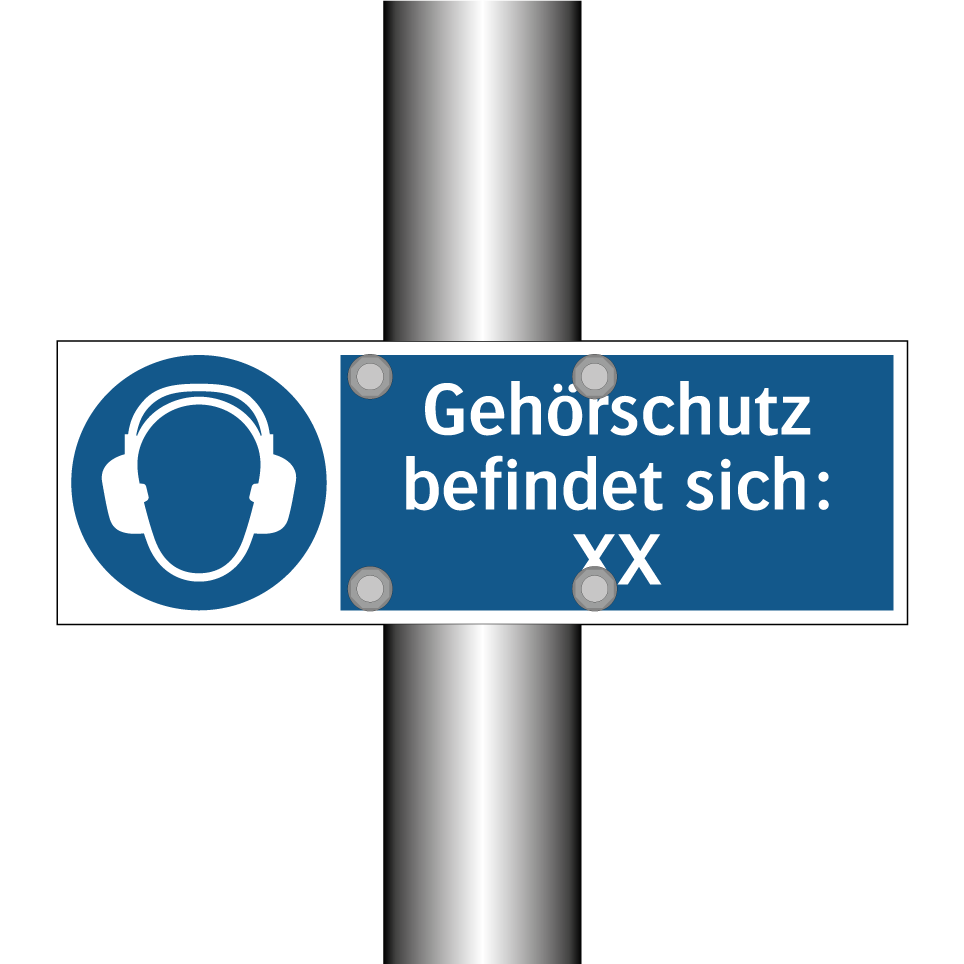 Gebotsschild mit dem Text Gehörschutz befindet sich: XX