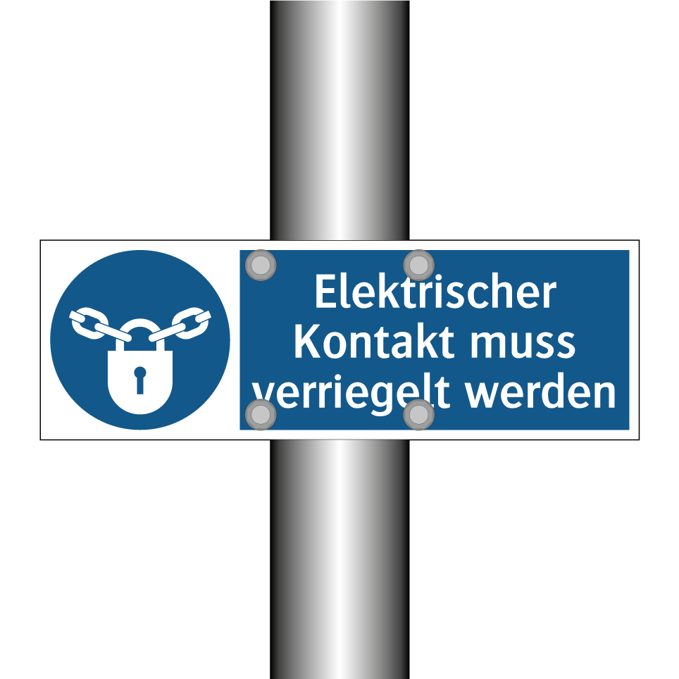 Gebotsschild mit dem Text Elektrischer Kontakt muss verriegelt werden